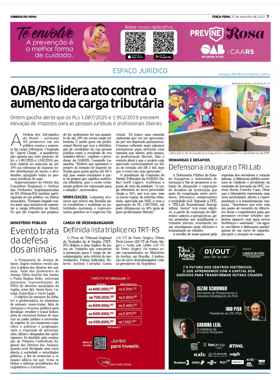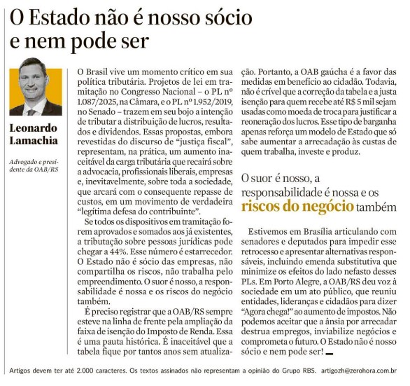 Deu na mídia: ato público da OAB/RS contra aumento da carga tributária repercute na imprensa